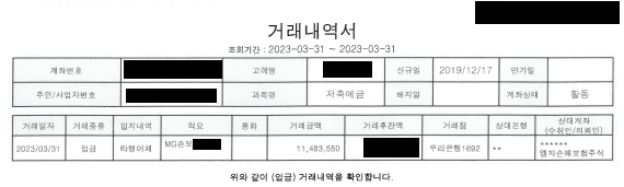 그리고 보험금은 3월 31일에 입금됐습니다.